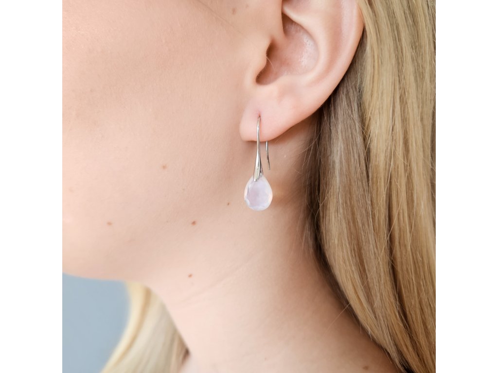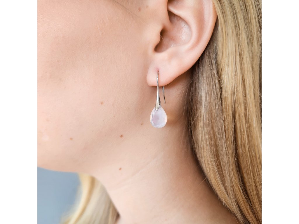 Jednoduché náušnice z kolekce Favorite, ideální pro každodenní nošení. Dominantou šperku je bílý mléčný vrtaný kámen ve tvaru hrušky, který dodává náušnicím nadčasový půvab a šarm.